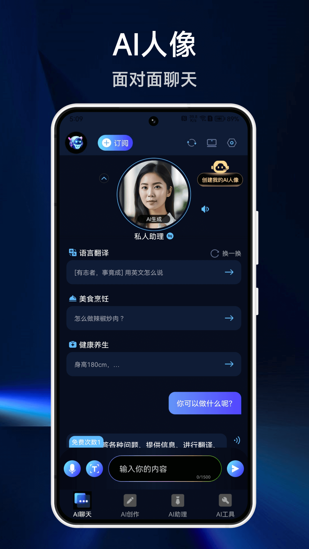 您可以使用AI模型来聊天,创作,写文章,诗词歌赋,制作学习计划及工作总结,也能够书写朋友圈文案,绘画模仿人类的聊天方式回复和聊天。它可以帮助您解决工作、生活中的难题。【更多功能】