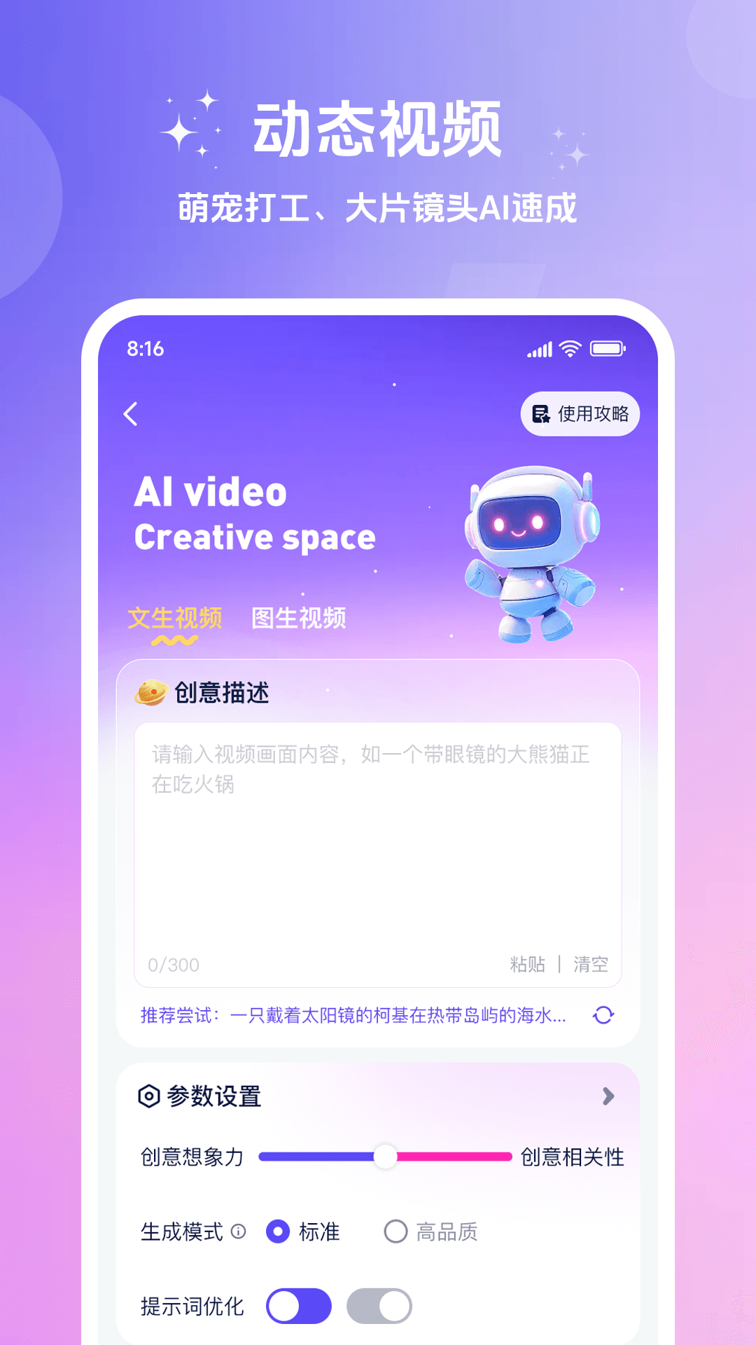 妙笔工坊是一款小工具,它可以跟您对话、解答您的问题。帮您智能创作绘图,智能视频创作,提高您的工作生产效率,根据您的需求,高效且准确的回答您的问题并且撰写各种类型的文章。同时还可以短时间内大量高清、精美的为您绘图,为您生成各种风格的艺术创作。
