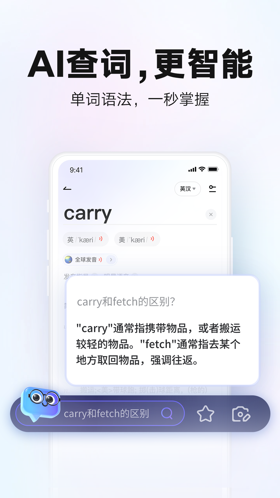 查词服务:提供文本输入查词、拍照取词、语音查词等多种查词方式,内置多部权威词典,涵盖丰富的单词释义、例句、同义词、反义词等。