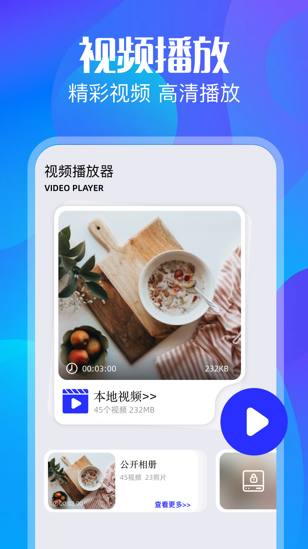 欢迎使用我们的全能多媒体管理应用——一个集本地视频播放、相册管理和视频编辑于一身的强大工具。我们的应用不仅能够帮助您高效管理和播放本地视频文件,还提供了丰富的相册功能,让您可以轻松创建并管理公开和私密相册,方便保存和分享珍贵时刻。
