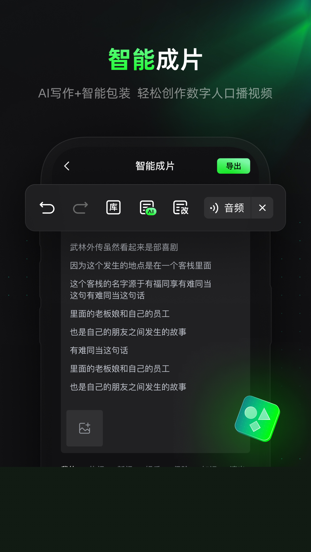 AI文案创作:内置AI文案工具,帮助用户快速撰写和优化视频脚本。