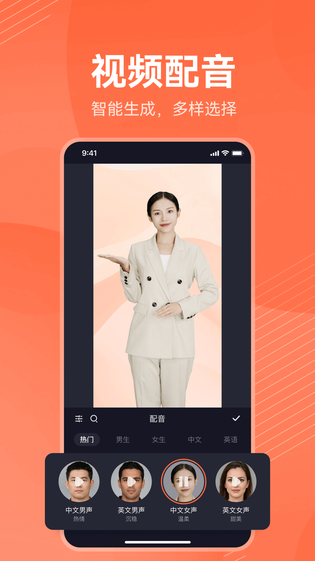 多语言配音:支持文字转语音,多种语言和音色选择,无需专业录制设备。