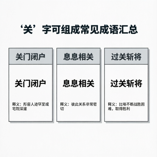 咱们平时读书看报,或是听长辈闲聊,经常会碰到带“关”的词儿。要是硬背,容易记混;要是把它们串起来理解,反倒有意思。其实把这些成语梳理一遍,大概能看出几条线来:有的讲的是关系亲密程度,有的说的是面对困难的姿态,还有的则是强调某个时刻的关键性。搞清楚这些分类,以后再遇到带“关”的成语,就不会一头雾水了。