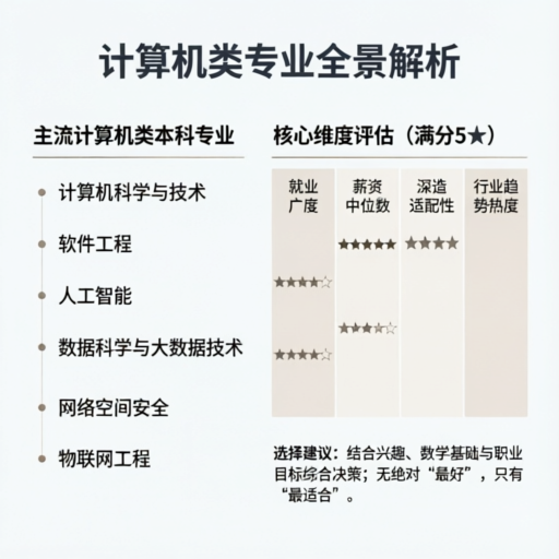 首先得明白,计算机不是一个单一的专业,而是一个学科门类(代号通常是 0812)。在本科和专科阶段,我们最常接触的就是这几个“亲兄弟”。