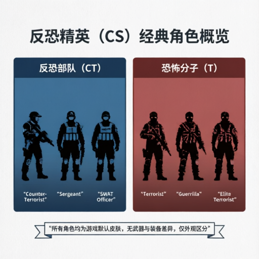 如果你是指那种能选技能、有背景故事的大侠,那可能找错了对象,CS 的核心始终是“战术配合”大于“个人英雄主义”。不过随着版本迭代,特别是到了 CS:GO 后期和现在的 CS2,官方确实给一些角色贴上了名字标签(比如某些行动里的特勤干员),但最本质的区分,还是在那两大阵营的对立上。